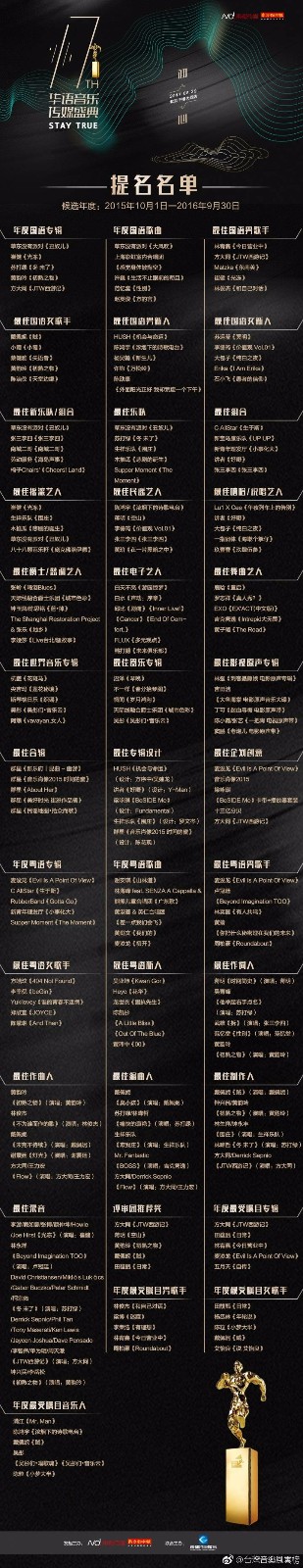 作为中国内地最具公信力的音乐奖项之一,华语音乐传媒盛典将于8月29日在北京举行。8月11日中午,第17届华语音乐传媒盛典完整提名名单正式公布。