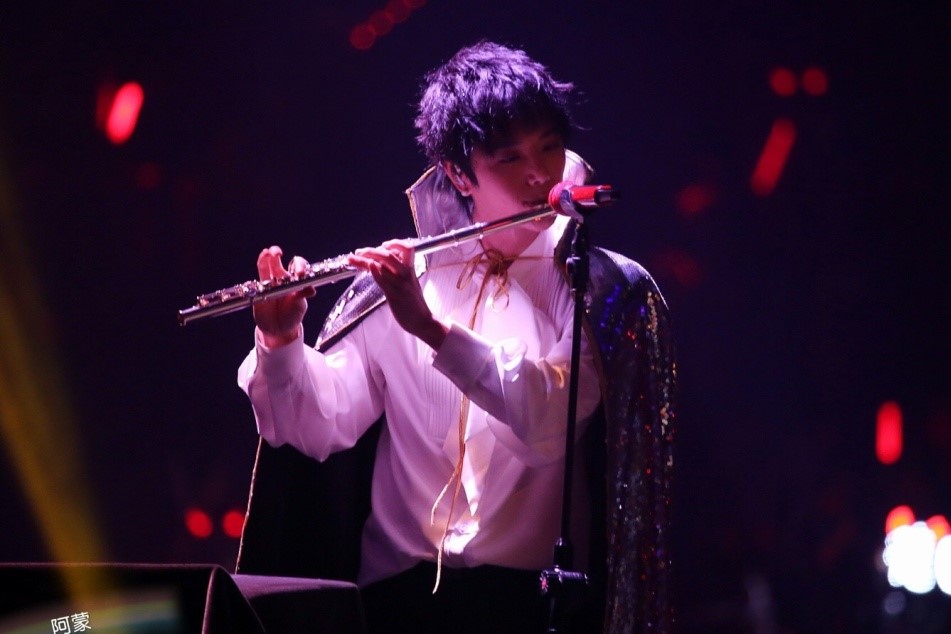 在花花诡谲致幻致迷的嗓音之外,花花还一往情深的吹起了长笛,当场帅翻一票女粉丝,女粉丝都叫嚣着要给花花生猴子。