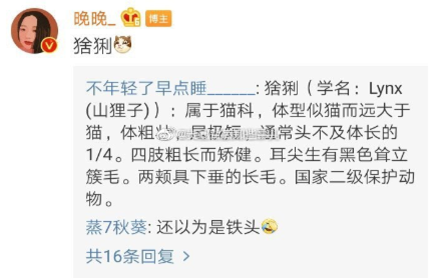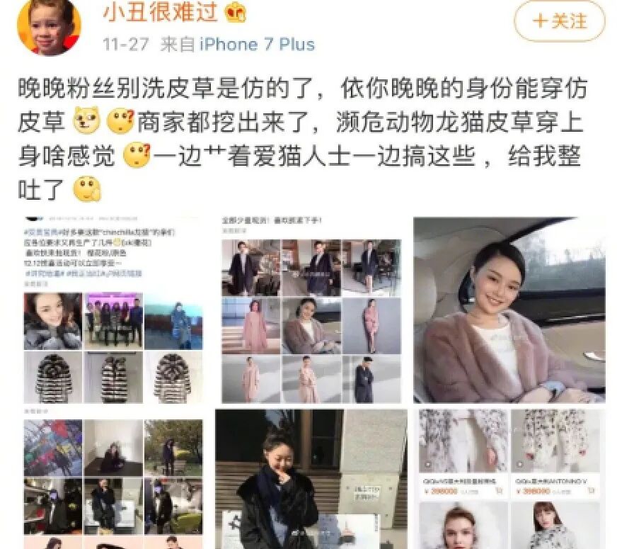 更让人意外的是,晚晚一边秀猞猁可爱一边被扒出穿猞猁皮草。