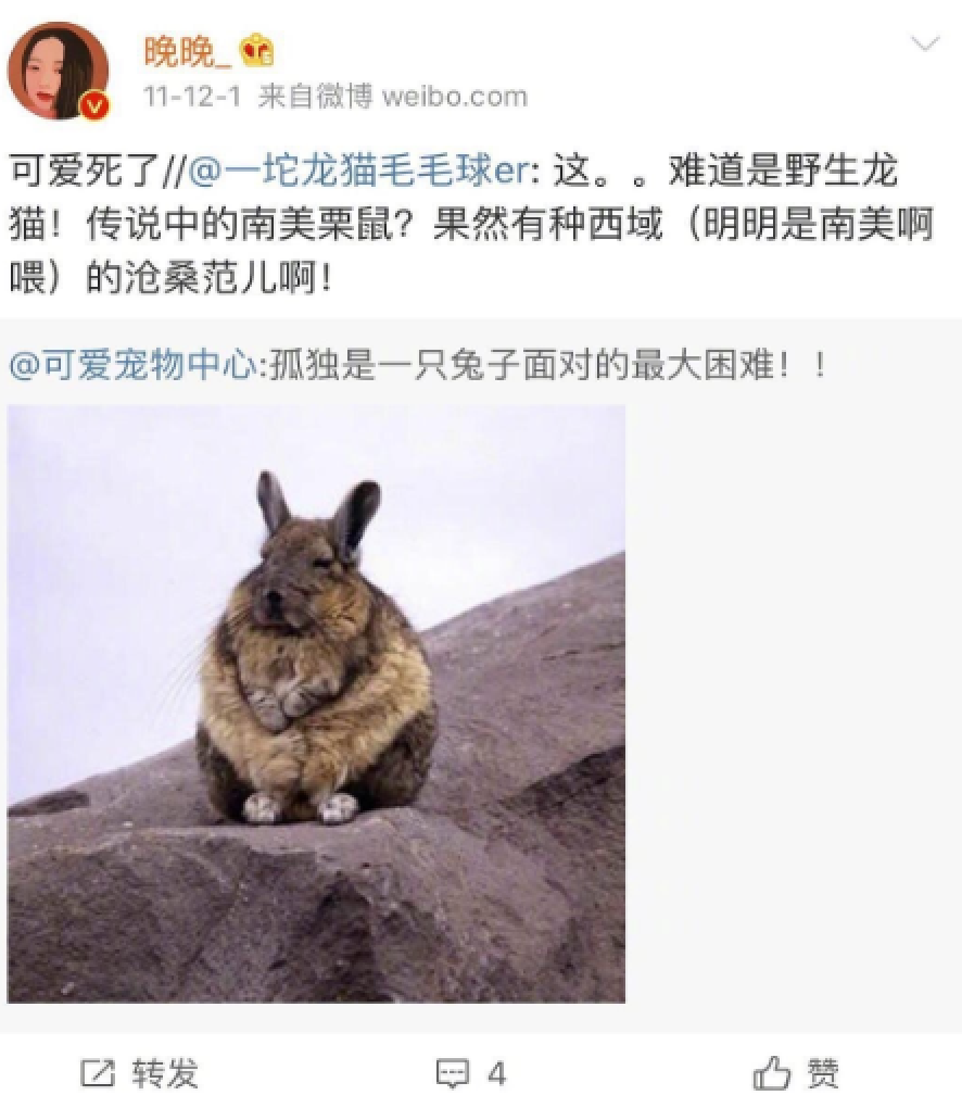 简单举个例子,为了立爱小动物的善良人设,晚晚曾在微博晒过很多合照。